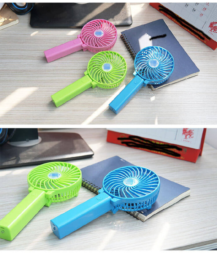 - Ventilador de mano y escritorio: puede ser ventilador de escritorio o ventilador de mano para satisfacer tus diferentes necesidades con un diseño fresco, puedes poner el ventilador en posición vertical o diagonal sobre la mesa, también es ideal para la oficina. Puedes llevarlo contigo fácilmente cuando sales a un picnic, compras, viajes, camping, etc.