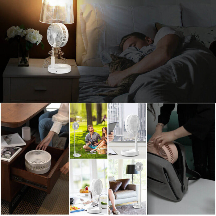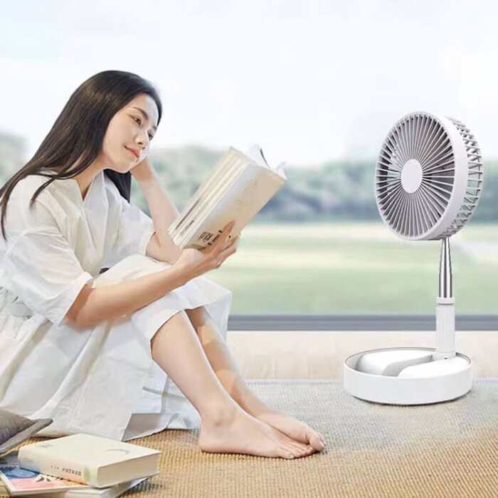- Ventilador plegable portátil: este circulador de aire se puede plegar en una pequeña forma redonda, no ocupa espacio.