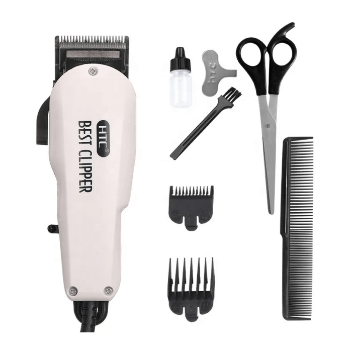 HTC Best Clipper para uso profesional y personal. Original CT-108 Maquinilla de afeitar muy potente y resistente Cuchillas autoafilables de acero al carbono Cordón grueso Velocidad ajustable y palanca de la cuchilla El paquete Incluye Maquinilla de afeitar x1 Tijeras x1 Peine de aseo x2 Cepillo de limpieza de aceite lubricante de 3 mm y 10 mm Tecla de ajuste de velocidad ManualHTC