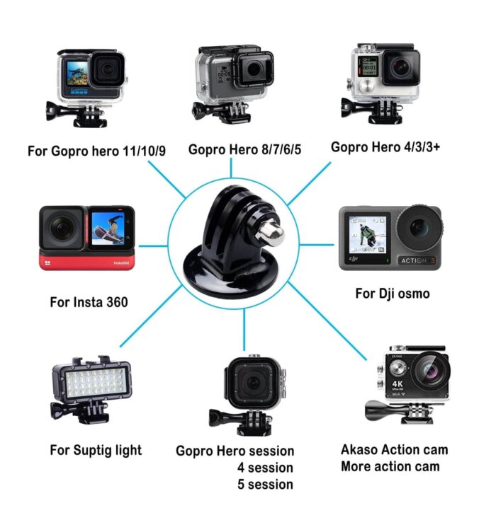En resumen, este adaptador no solo es compatible con una amplia gama de cámaras de acción, sino que también está fabricado con materiales duraderos y de alta calidad, lo que lo convierte en una opción confiable para quienes buscan una solución versátil y fácil de usar en sus aventuras al aire libre.