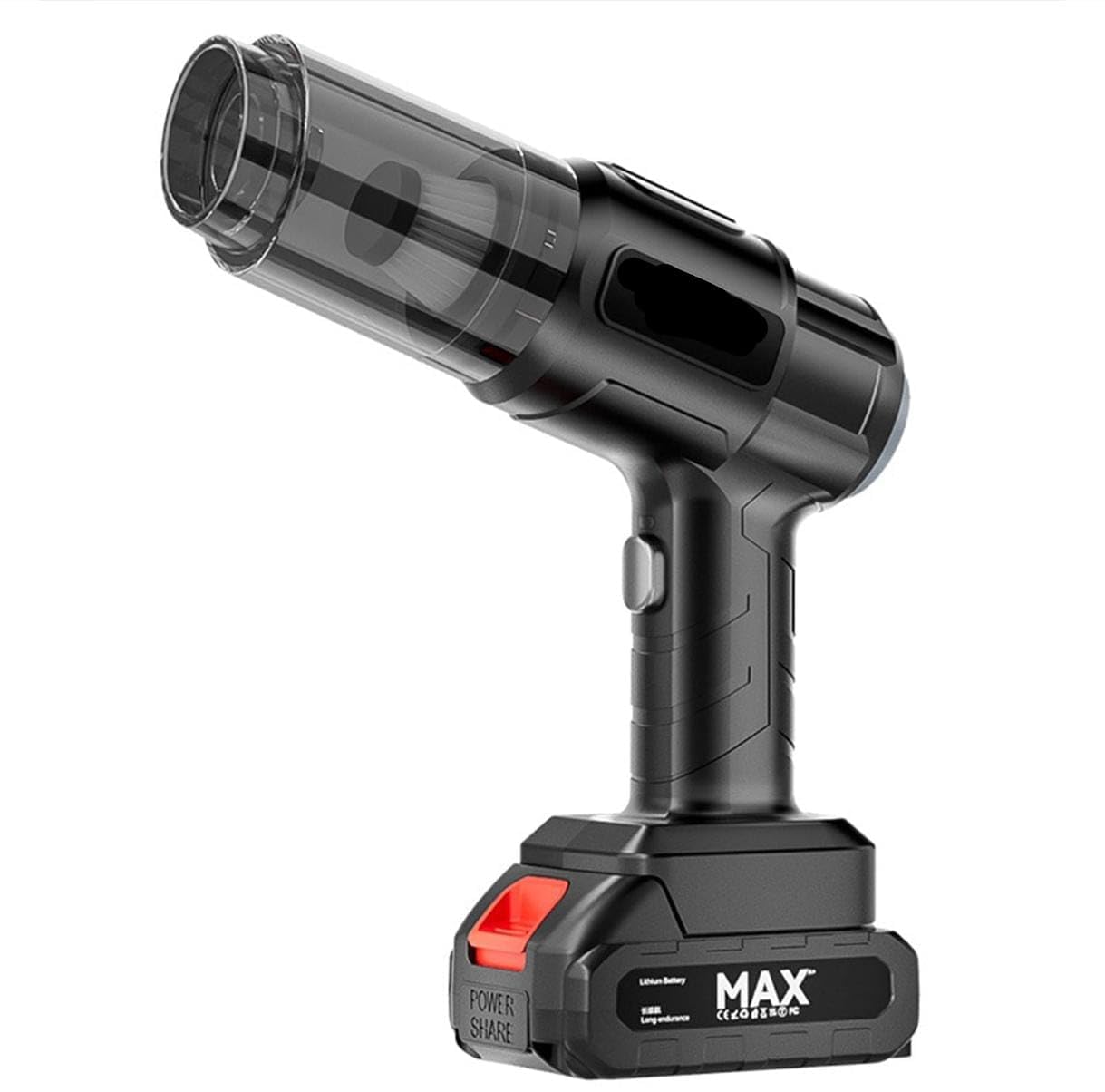 Funciona con batería de litio de 2500 mAh, lo que garantiza buena autonomía para limpiezas rápidas y eficientes. Ofrece libertad total de movimiento sin cables y una carga práctica para el uso diario.