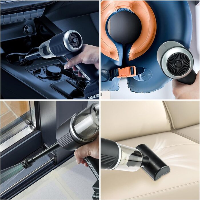 La aspiradora viene equipada con una batería de iones de litio de 6000 mAh, proporcionando hasta 30 minutos de uso continuo, garantizando limpiezas rápidas y convenientes donde lo necesites. No importa si es una limpieza rápida en tu coche, teclado, ventilador o ventanas de lirio, esta aspiradora siempre estará lista para la acción.