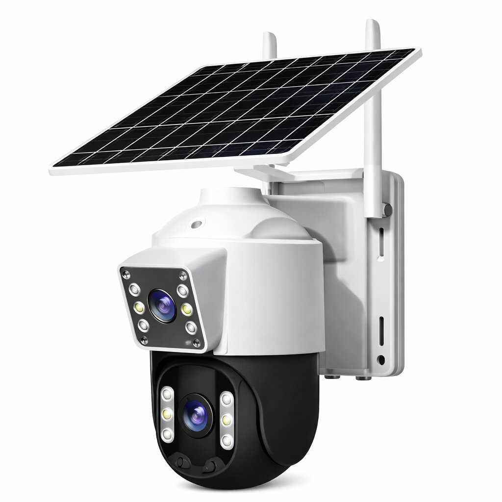 Cámara De Seguridad Solar Protege tu hogar o negocio con una cámara avanzada de doble objetivo y visión panorámica 360°, diseñada para ofrecer vigilancia completa, imágenes nítidas y autonomía energética gracias a su panel solar integrado. Ideal para exteriores, combina tecnología inteligente, visión nocturna a color y conexión Wi-Fi para un monitoreo eficiente desde cualquier lugar.