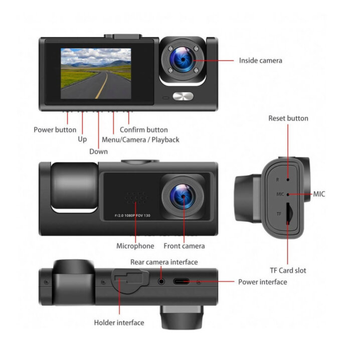 Este video grabador cuenta con una pantalla IPS de alta definición, la cual proporciona imágenes nítidas y colores vibrantes. Gracias a su amplio ángulo de visión de 170 grados, la cámara cubre un campo visual extenso, reduciendo puntos ciegos y garantizando una mayor seguridad en la carretera.