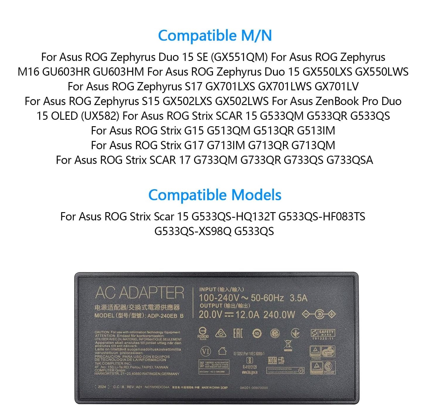 Este adaptador es compatible con una gran variedad de portátiles ASUS ROG Zephyrus, ROG Strix y ZenBook Pro Duo, entre ellas: