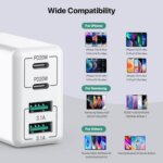 - Carga rápida: el puerto USB-C admite una salida de potencia máxima de 20W. El bloque de carga USB C ofrece una carga rápida y eficiente hasta 3 veces más rápida que un bloque de cargador de 5 W. Carga tus dispositivos iPhone de 0% a 50% en solo 30 minutos.