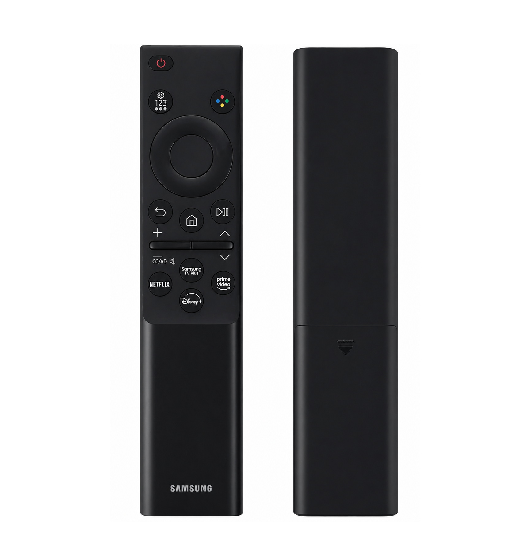 Incluye botones dedicados para plataformas populares como Netflix, Samsung TV Plus, Prime Video y Disney+, permitiéndote acceder rápidamente a tu contenido favorito con un solo clic.