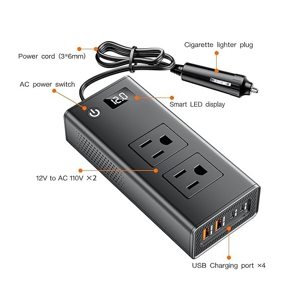 Convierte la energía de tu vehículo en una fuente de alimentación versátil con este inversor de corriente para automóvil de 200W, diseñado para transformar DC 12V en AC 110V, permitiéndote conectar y cargar múltiples dispositivos mientras viajas.