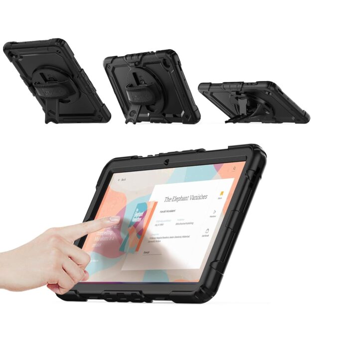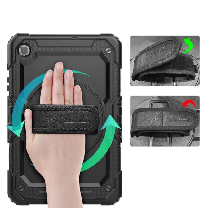 La cover integra un soporte giratorio de 360 grados, ideal para ajustar tu tableta en múltiples ángulos de visión, ya sea para leer, trabajar, mirar películas o jugar. Además, incluye una correa de mano suave que brinda un agarre firme y seguro, reduciendo el riesgo de caídas accidentales. Para una mayor portabilidad, cuenta con una correa de hombro ajustable, que permite colgar la tableta cómodamente al viajar, trabajar al aire libre o usarla en familia.