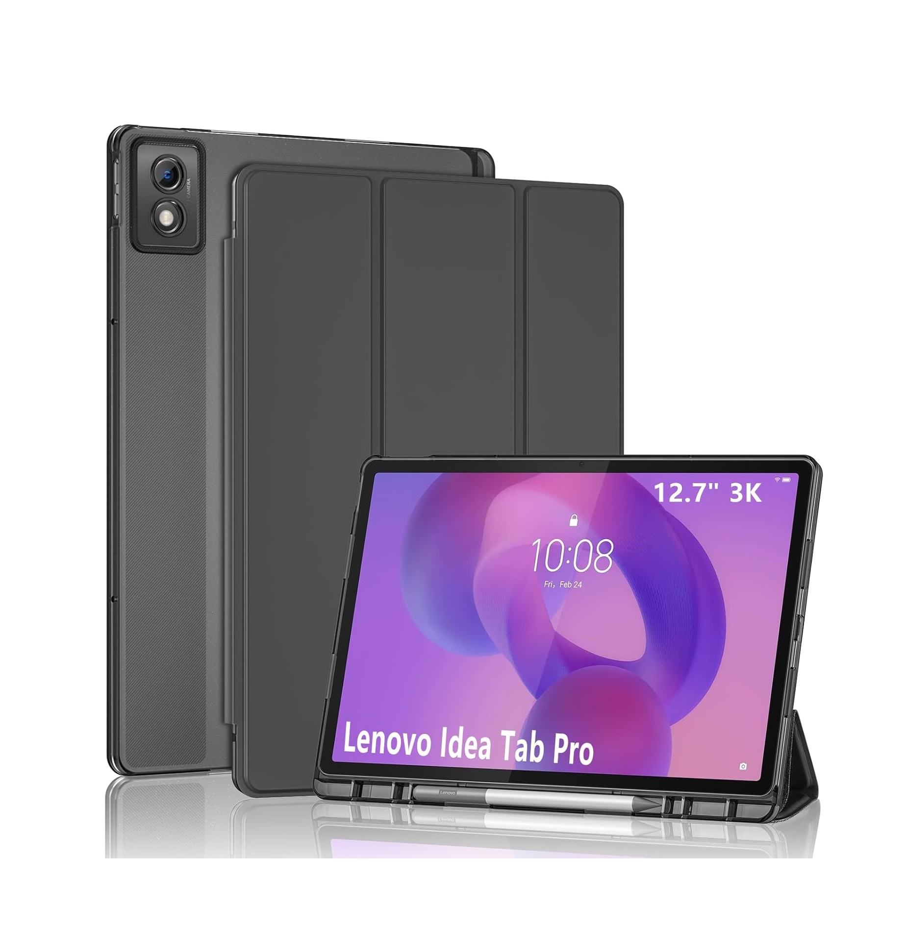 Cover Tipo Libro Para Lenovo Idea Tab Pro (12.7 pulgadas) con soporte tríple, portabolígrafo, cierre magnético y encendido automático.