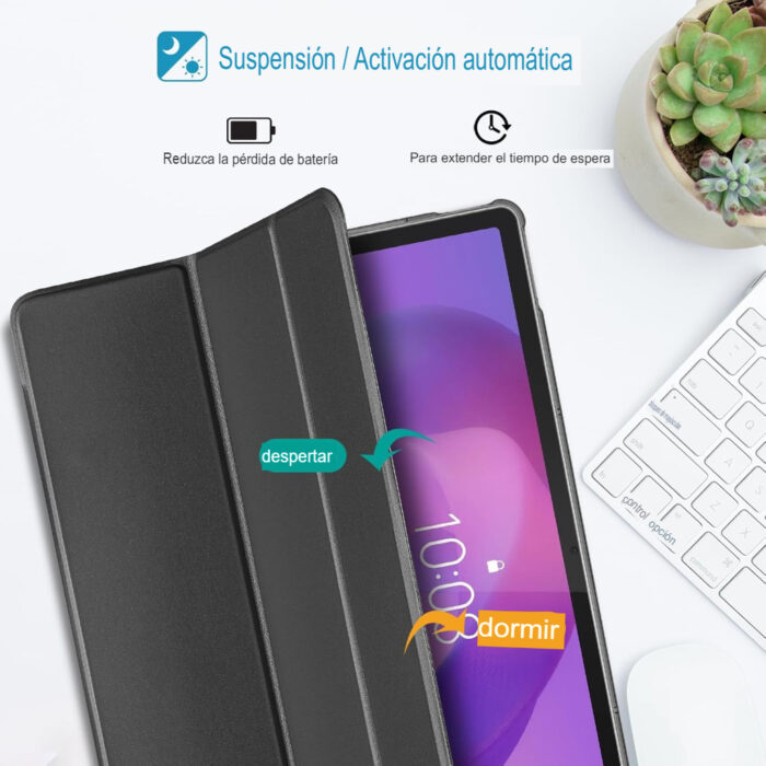 El cierre magnético mantiene la funda firmemente cerrada y permite colocarla o retirarla con facilidad. Además, es totalmente compatible con la función de encendido y apagado automático, ayudando a optimizar el consumo de batería.