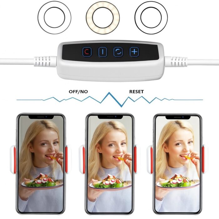 No requiere baterías, ya que funciona mediante USB. Su cable largo de 55 pulgadas permite conectarlo cómodamente a laptops, cargadores o power banks. Además, puede utilizarse como luz de anillo, lámpara de escritorio, luz de fotografía o monoluz.