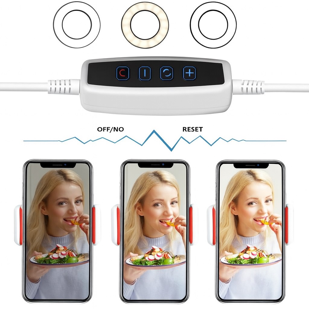 Incluye tres modos de color (blanco, cálido y mixto) para adaptarse a cualquier ambiente. Además, sus 10 niveles de brillo permiten ajustar la intensidad ideal para cada ocasión, desde una reunión formal hasta una grabación nocturna. Cada escena luce más clara y equilibrada.