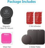 - Soporte magnético poderoso: Este soporte magnético reforzado es lo que lo diferencia de otros montajes. Este soporte magnético universal produce una fuerza de atracción intensa que sostendrá cualquier smartphone. Incluyendo dispositivos Android, Apple, Blackberry y Microsoft.