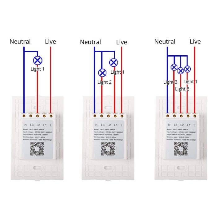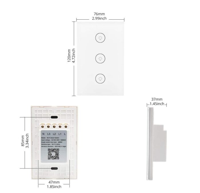 Con la aplicación Smart Life, disponible en App Store y Google Play, podrás controlar el interruptor desde tu teléfono móvil a través de Wi-Fi o red 4G, sin necesidad de un hub adicional. Para restablecerlo, solo debes mantener presionado cualquier tecla del dispositivo durante 20 segundos hasta que la luz parpadee.