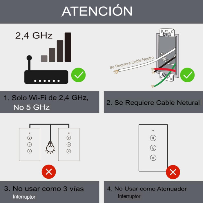 ⚠️ Interruptor inteligente Dimmer WiFi Compatible Con Alexa Y Google Home Requisitos de instalación