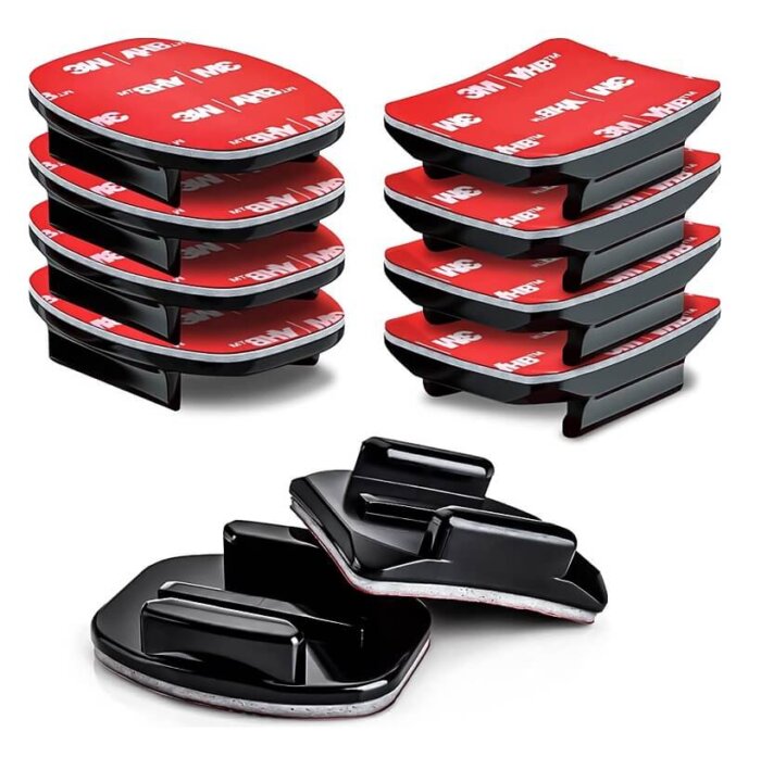 - Obtén más por tu dinero. Nuestro kit de montaje adhesivo para casco para cámaras de acción GoPro contiene 10 unidades en total; 5 hebillas de montaje curvadas con calcomanías y 5 hebillas de montaje plano con calcomanías.
