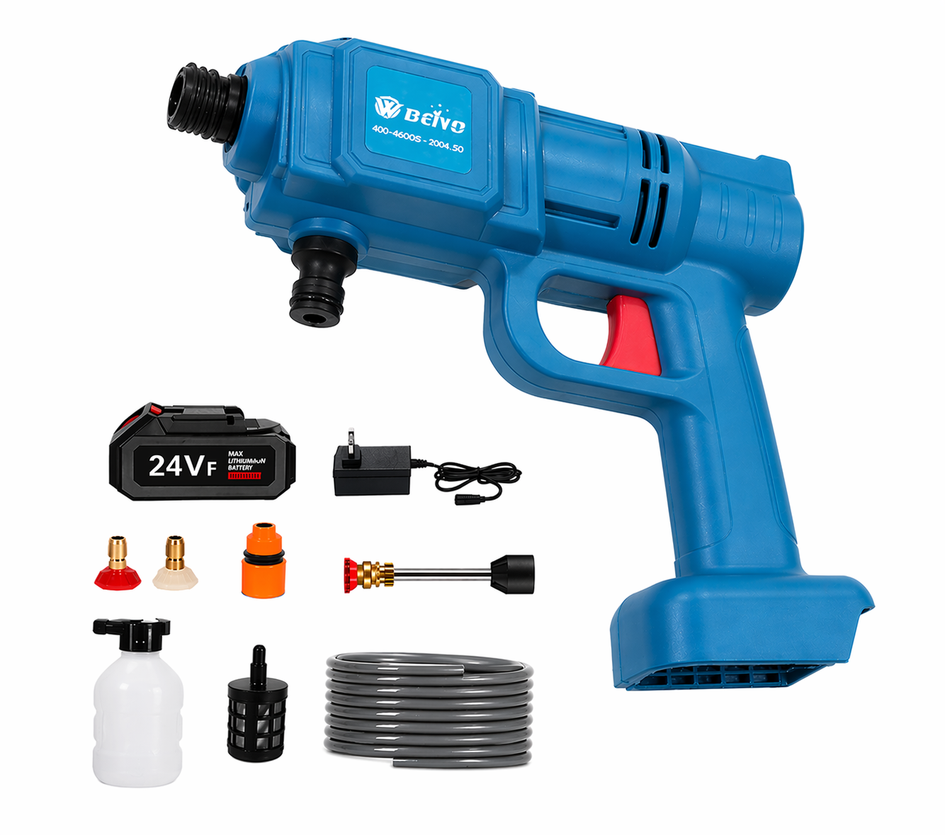 La lavadora de presión inalámbrica Bravolu está diseñada para quienes buscan una limpieza eficiente, práctica y sin complicaciones. Gracias a su batería de litio de 24V y su sistema sin cables, esta herramienta se convierte en la compañera ideal para mantener todo impecable, tanto en el hogar como en exteriores. Con una presión de trabajo de hasta 430 PSI y un caudal de 5 L/min, ofrece un rendimiento potente para eliminar fácilmente la suciedad más difícil.