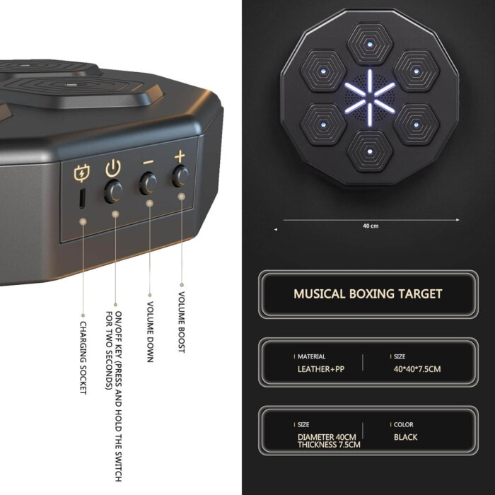 - Conectividad Bluetooth: equipado con altavoces integrados, nuestro equipo de boxeo electrónico se conecta sin esfuerzo a través de Bluetooth a tus dispositivos, lo que te permite disfrutar de tu música favorita mientras participas en combates de boxeo.