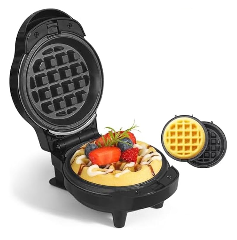 MINI ES PODEROSO: Con una superficie de cocción antiadherente de 4″, esto es IMPRESCINDIBLE para ese primer departamento, cocina más pequeña, dormitorio universitario o casa rodante/caravana y se guarda fácilmente en un gabinete o cajón de la cocina. WAFFLY FÁCIL: Simplemente conéctelo y ve; La waflera se calienta en minutos. Las superficies dobles antiadherentes brindan una cocción uniforme para obtener resultados consistentes y deliciosos gofres dorados en todo momento. Las superficies antiadherentes facilitan la limpieza.