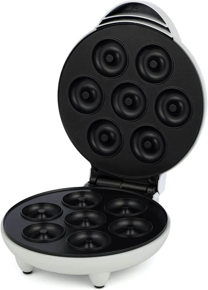 - Fácil de limpiar: la mini dona de maquina tiene una bandeja concentrada para hornear para ser uniforme, antiadherente, limpia y fácil de limpiar