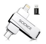 Memoria USB SCICNCE 512GB con conector Lightning, USB y USB-C. Ideal para iPhone, iPad, Android y PC. Transfiere, respalda y reproduce archivos sin apps.