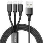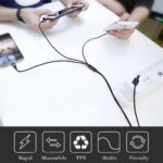 - El cable cuenta con dos conectores MicroUSB para tu Mavic Mini y controlador y un conector USB-C para tu teléfono o tableta.