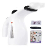 Incluye cepillo para tela, removedor de pelusas y vaso medidor de agua, facilitando el cuidado de diferentes tipos de prendas.