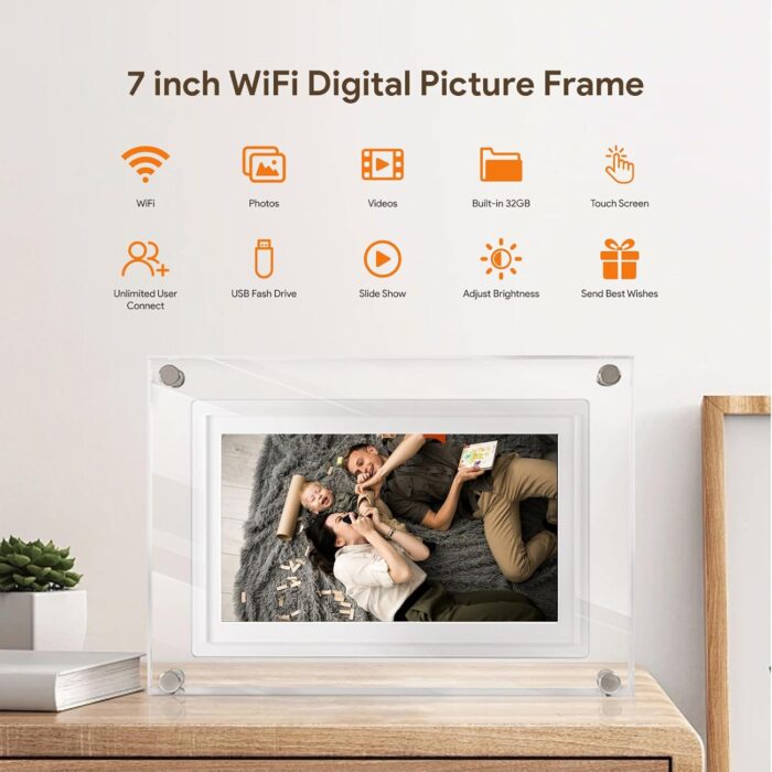 Descubre el PortaRetrato Digital HD WIFI 7″ Video/Fotos: comparte instantáneamente fotos y videos desde tu celular, con pantalla táctil HD