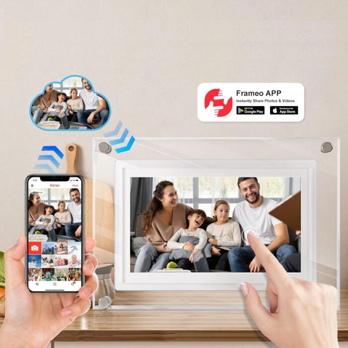 El PortaRetrato Digital HD Frameo es mucho más que un simple dispositivo: es una ventana interactiva para compartir tus recuerdos más valiosos con quienes más amas, sin importar la distancia. Diseñado para mantener a las familias conectadas, este innovador marco te permite enviar fotos y videos cortos de hasta 15 segundos desde cualquier lugar del mundo, simplemente usando la aplicación gratuita «Frameo», compatible con Android e iOS. La app permite subir hasta 10 imágenes de forma gratuita, y si deseas más funciones, puedes actualizar a Frameo+ para expandir tus posibilidades.