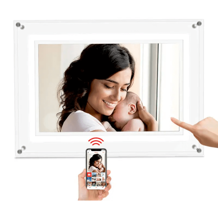 El PortaRetrato Digital WIFI 10.1 Pulgadas es una forma moderna y emocionante de mantener vivas tus memorias. Este dispositivo no solo te permite ver fotos, sino que también reproduce videos y te ofrece la opción de compartir imágenes de manera inalámbrica desde tu teléfono, haciendo de cada momento un recuerdo inolvidable. Con su elegante diseño en acrílico transparente, el Motion Video Frame se convierte en un accesorio decorativo de alta calidad para cualquier espacio en tu hogar, oficina o como un regalo especial.