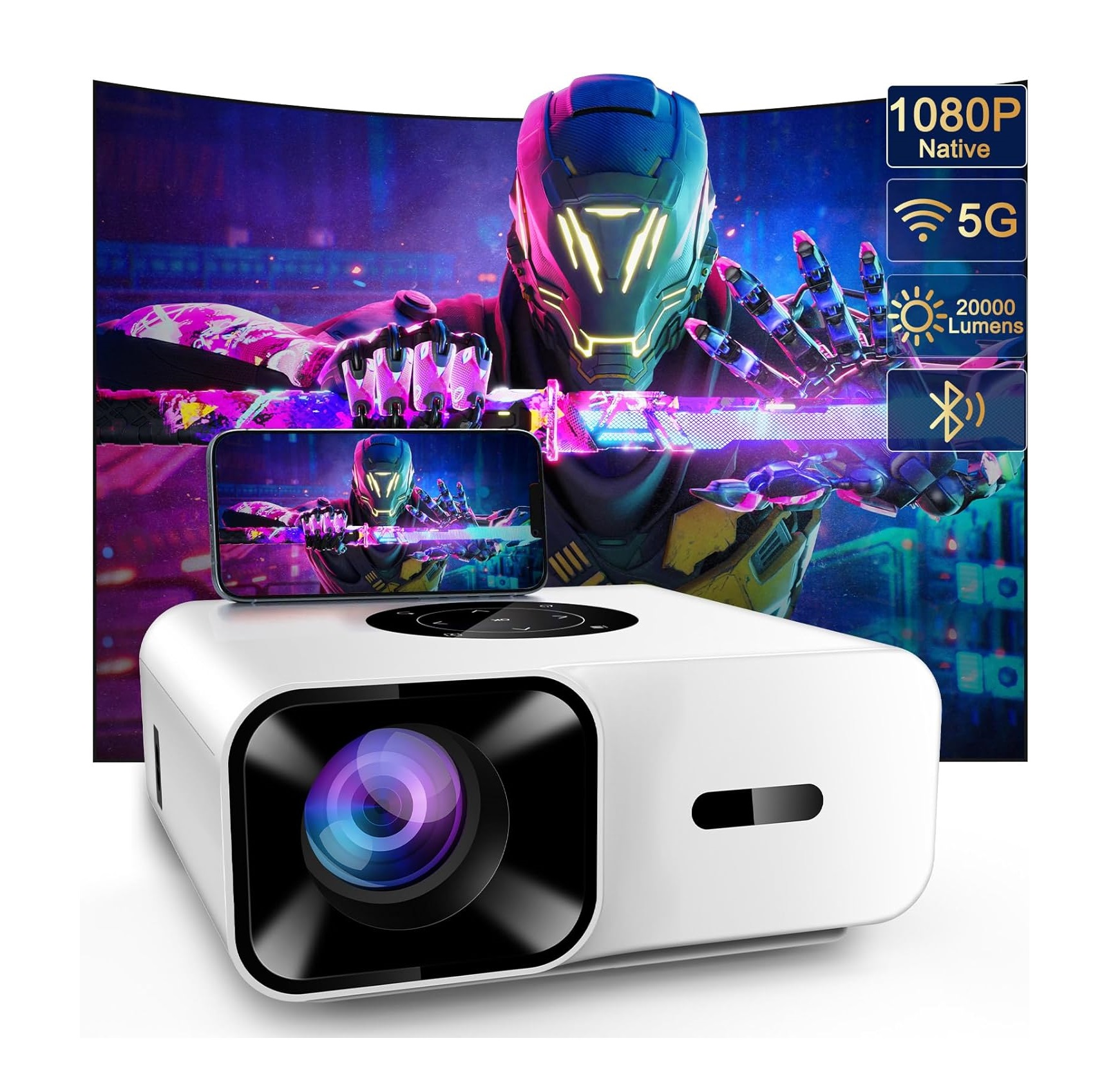 Proyector portátil ZOAYBU Full HD 1080P con Bluetooth, enfoque eléctrico y pantalla incluida. Compatible con HDMI, USB, PC, consolas y celular.