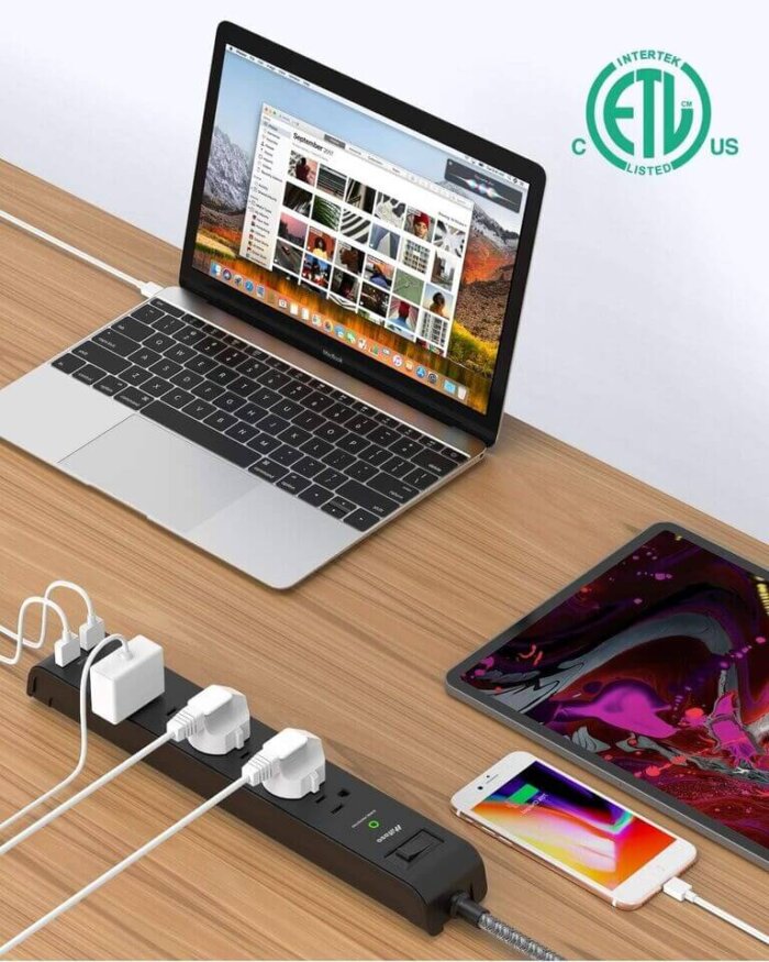La regleta de alimentación Mifaso combina funcionalidad, diseño compacto y seguridad avanzada, convirtiéndola en una solución ideal para el hogar, la oficina o cualquier espacio que requiera múltiples opciones de conexión. Con seis tomas de corriente de CA y cuatro puertos USB, esta regleta ofrece un total de 10 salidas que pueden alimentar y cargar diversos dispositivos simultáneamente.