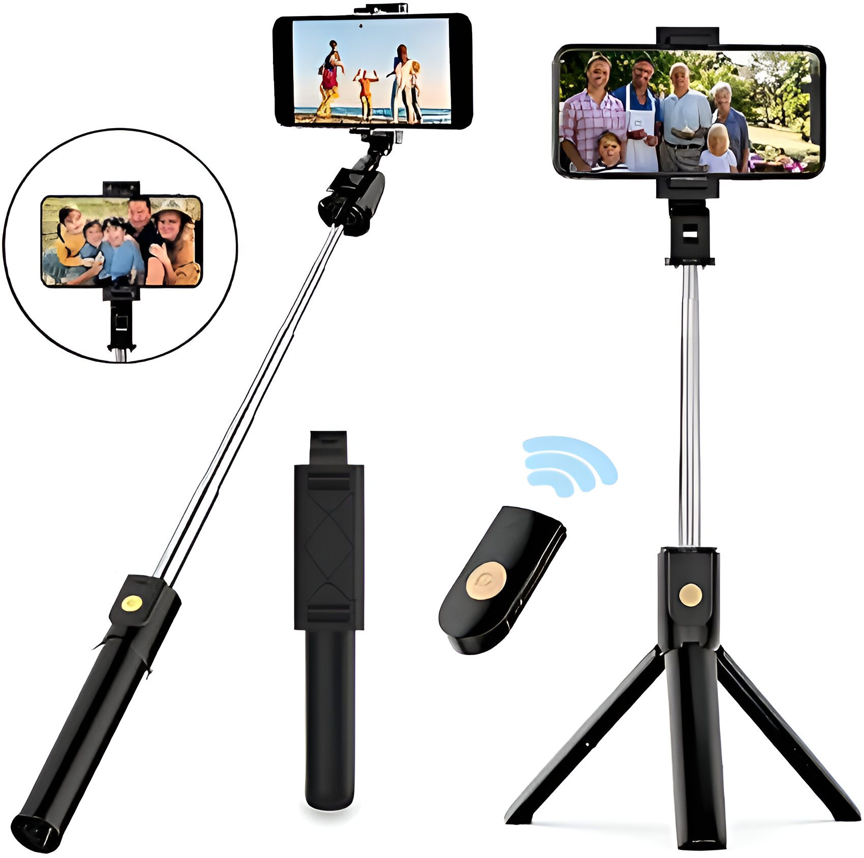Captura tus mejores momentos sin esfuerzo, ya sea que estés solo, con tu familia o entre una multitud. Este monopod con control Bluetooth te permite tomar fotografías y videos desde ángulos amplios, altos y difíciles de alcanzar, obteniendo resultados más creativos, cómodos y estables.
