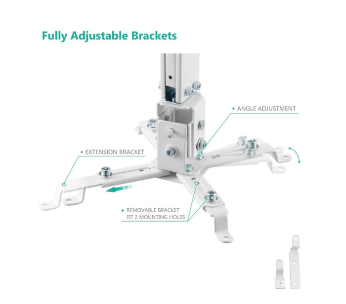 El soporte de montaje en techo WALI está diseñado para adaptarse a una amplia variedad de proyectores, compatible con agujeros de montaje que van desde 8.9 hasta 12.4 pulgadas. Esto lo convierte en una opción ideal para usuarios que buscan una solución universal y funcional para su equipo de proyección.