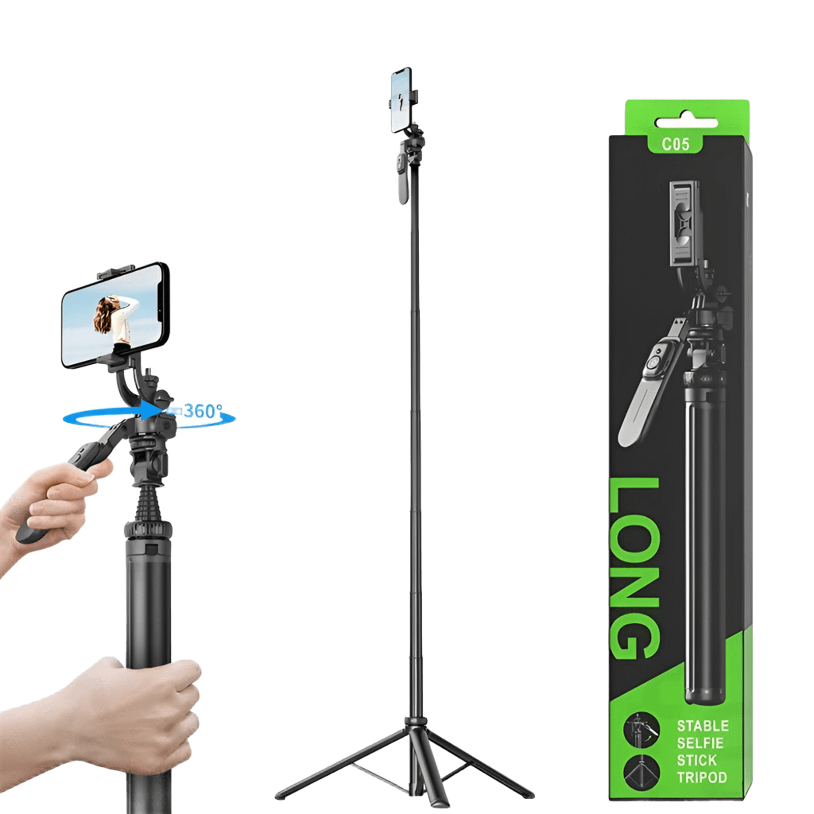Gracias a su estructura liviana y plegable, el C05 Selfie Stick Tripod es fácil de guardar y transportar. Es ideal para viajes, vlogs, redes sociales, eventos, clases virtuales o uso diario, adaptándose a cualquier entorno.