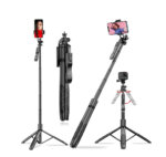 - la altura ajustable del trípode es de 1,6 m, lo que le permite disparar a varias alturas que otros soportes de trípode de teléfono no pueden disparar